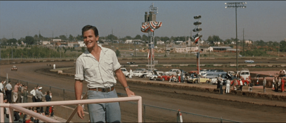The film opens in Banning, Texas, where Wayne (Pat Boone) is dropping off his girlfriend, Betty Jean (Linda Henrich) in his snazzy race car. Betty Jean is extremely unnerved by Wayne’s love for smoking the competition on the track, but it’s only because she’s worried about him. Wayne assures her he’ll come back bearing a nice, shiny trophy.