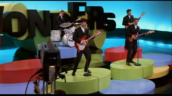 Other than that, there were plenty of references to the Beatles in That Thing You Do! Jimmy’s performance style is dead-on early John Lennon. When the Beatles appeared on The Ed Sullivan Show, John Lennon’s first closeup was qualified with, “Careful, girls–he’s married.” Something similar shows up in That Thing You Do! and it triggers a series of events that will change everything for some of the characters.