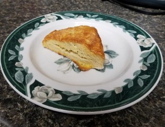 I could tell when I read the recipe for these that they were a very basic scone. Cream scones are fancy in their own way, though. The tops have an egg wash sprinkled with sugar. And they’ve got butter. Lots of butter. Lots of cream, of course. And lots of baking powder, so they get very high and fluffy. Since they don’t have a lot of flavor pretty much any sweet topping will set them off, and as a nod to the days of rationing we had these scones with strawberry jam and honey. Clotted cream would be nice too, mock or otherwise.