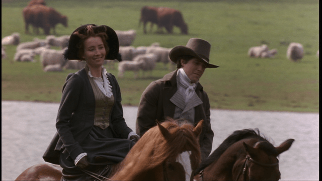 To be fair, though, Austen’s orignal Sense and Sensibility is a tightly-packed, complicated story with lots of character development, and Thompson’s take really does it justice, full of witty, well-placed dialogue, which gets the main ideas across very effectively. Some have interpreted this adaptation as being less flattering to Elinor because they think it implies she’s the only one who needs to change, but I disagree. Both sisters acknowledge they have faults they need to overcome and admire each other for having the qualities they each lack, so there’s a good balance. This was by design; Emma Thompson and director Ang Lee set out to tell a good story above all else and the finished product works beautifully.