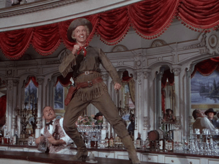 So yeah, about that familiarity I mentioned: Calamity Jane‘s derivative qualities are more than a little obvious, starting with “I Can Do Without You,” a fun little tug of war not unlike “Anything You Can Do I Can Do Better,” from Annie Get Your Gun, and it’s a funny coinkidink they both feature Howard Keel. “Windy City” is remarkably similar to “Kansas City” from Oklahoma!, as is “Higher Than A Hawk” to “The Surrey With the Fringe On Top.”