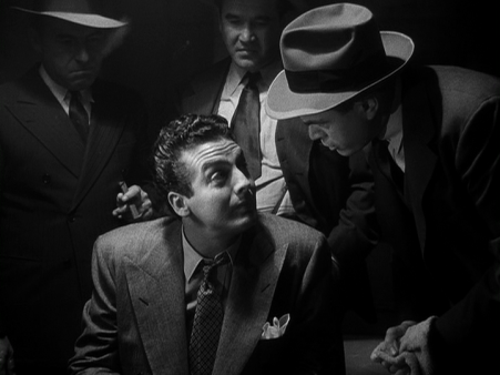 Like I said, I Wake Up Screaming is not a typical film noir. Sure, it’s got a lot of the usual elements, but there’s some blanc sprinkled in. Parts of the film are actually funny, and for some reason, “Somewhere Over the Rainbow” plays over the last half of the film. Really. It’s there alllll the time in various symphonic interpretations. No lyrics, though, not a syllable from Judy Garland, and certainly no light breaking through clouds while unseen birds cheep. Harold Arlen isn’t credited, but I hope he got paid handsomely for the use of his lovely tune.