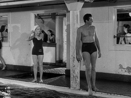 What wouldn’t have been shocking is the totally-not-random swimming scene, which only exists because 1941 audiences expected to see Betty Grable’s legs. How to do that in a film noir? Jill and Frankie go swimming, of course, because that’s what Frankie likes doing late at night, and by the side of a very busy public pool Grable’s famous gams are on full display.