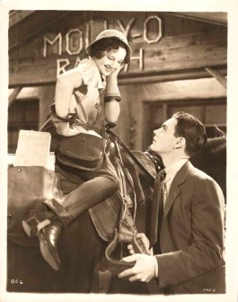 Its charm lies in its uncomplicated irony: Playboy Danny Churchill won’t stay away from the ladies so he’s exiled to Custerville, Arizona by his millionaire dad. He’s supposed to manage the family ranch, but he’s such a divo he takes a cab from New York to Arizona. Yeah. The whole way. It costs over seven hundred dollars in 1930s money. Then Danny decides to turn the ranch into an ongoing party, with dancing girls and music galore, and just in case it’s all too placid, he meets Molly, the lovely female postal worker every guy in town pines for. He’s interested, of course. She’s not, of course.