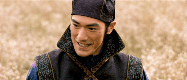 Meanwhile, at said Peony Pavilion, a new girl, Mei (Ziyi Zhang), has joined the ranks. She’s blind. She’s also an amazing dancer. She charms a client, Jin (Takeshi Kaneshiro) so much he tries to rape her, but a company of soldiers hears the madam, Yee (Dandan Song) screaming and come running in, led by Captain Leo (Andy Lao). They make a great show of arresting Jin for attempted rape, and try to arrest Mei for being indecently dressed, but Mei makes a deal with Leo: If she wins a game of Echo, she can go free.