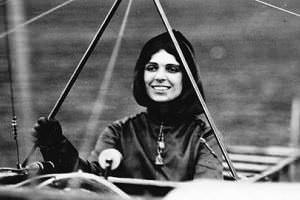 Earhart also pays tribute to Harriet Quimby, the first woman in America to earn a pilot’s license and setter of altitude and distance records. She was also, sadly, the victim of the unfortunate physics of first-decade planes, which were light, narrow, and sometimes made out of woven wicker. It’s amazing these things even got into the air because there was barely any surface to them whatsoever. Ballast had to be added if not all the seats were filled, and anyone who flew in them had to keep very still or the results would be disastrous.