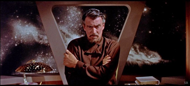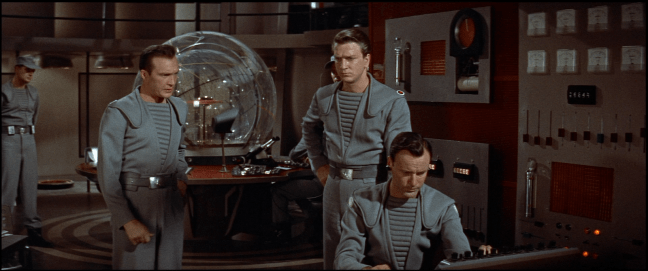 As it happens, though, Dr. Edward Morbius (Walter Pidgeon) is alive and well, but he isn’t too jazzed to hear from his fellow Earthlings; in fact, he tries to discourage them from landing because he can’t vouch for their safety. Adams isn’t put off, though, and presses Morbius for the coordinates, but he suspects something fishy is going on, so everyone packs sidearms.