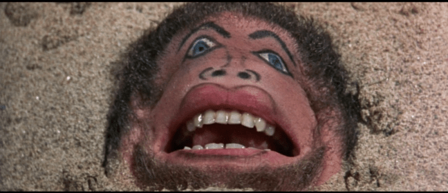 For those who haven’t seen this movie, what we’re looking at, dear friends, is Bob Denver’s inverted mouth rapping “Ho, Daddy! Surf’s Up!”