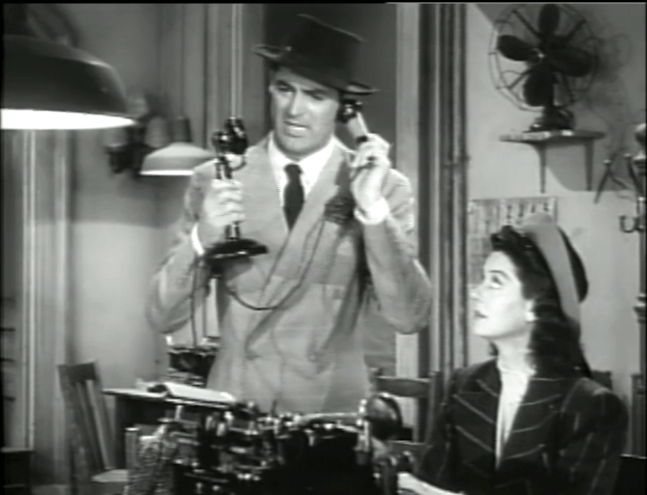 Oh, this one moves fast. Hilde Johnson stops by her former paper, where she tells her ex-husband, Walter Burns that she’s off to marry a guy named Bruce and live a normal life. Well, that’s what she thinks, but Hilde’s a born newswoman, and there’s a story afoot that she can’t resist. Poor Bruce will just have to wait.