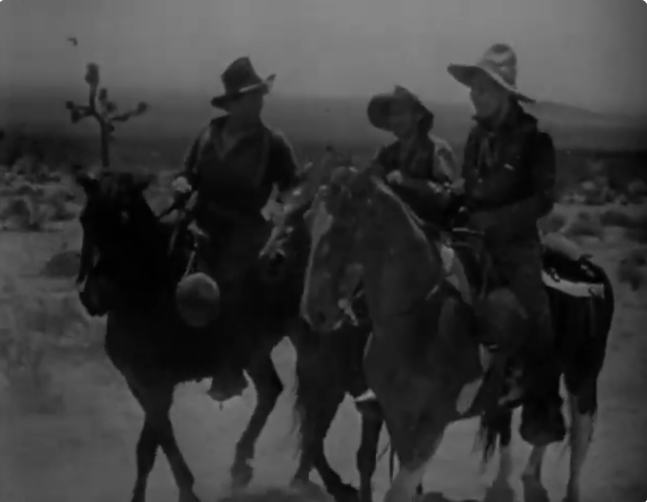 The movie opens with three guys, José (Joe De La Cruz), Tom “Barbwire” Gibbons (Raymond Hatton), and Bob Sangster (Charles Bickford) riding around in the desert with Barbwire playing “Oh! Susanna,” on his harmonica. They’re on their way to New Jerusalem, which, according to the sign, is a Bad Town For Bad Men, and just to punctuate the tagline, there’s a noose swinging merrily in the desert breeze.