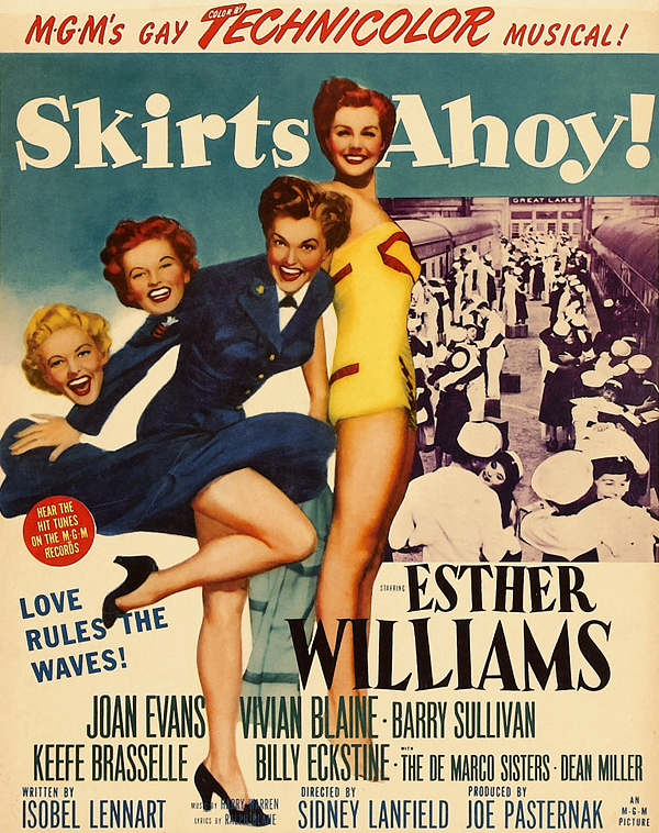 It seemed to pay off, as Skirts Ahoy! did solid business, bringing in $7.2M at the box office, or $153M in today’s money. Everyone seemed to have a grand time with the movie, not only as a recruitment tie-in for the WAVES, but skirts were a thing. Life-size cardboard cutouts of Esther Williams in her WAVE uniform were strategically enhanced with fabric and positioned in theater lobbies with fans aimed at them.