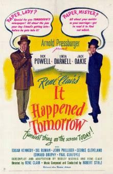 According to the American Film Institute, It Happened Tomorrow was originally based on a short story purchased by Frank Capra. This story shared a lot of similarities with a play called The Jest of Haha Laba, which was also bought by Capra. Unfortunately, Capra was unable to make the film due to enlisting in the Army and therefore sold the story and play rights to Arthur Pressburger (no relation to that Pressburger). It Happened Tomorrow was a respectable, albeit low-key hit in 1944, with two Oscar nominations although no wins.