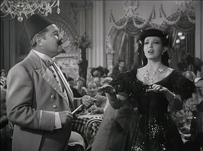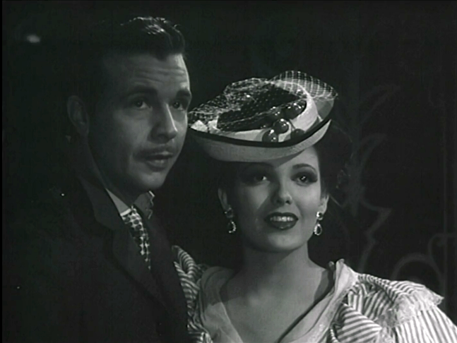 Pop hands Larry a newspaper and tells him it’s tomorrow’s edition. Don’t lose it, he tells. Larry. Larry doesn’t know what to make of it, but he takes the paper and follows the guys to a music hall, where Cignolini (Jack Oakie) has his niece, Sylvia (Linda Darnell) in a trance and telling the future. Larry is a bit entranced himself, and asks if Sylvia will have lunch with him. Cignolini gets protective by way of reminding the audience that Sylvia is in a trance and doesn’t hear anyone but him. Larry, who sees the barest crack of a smile on Sylvia’s face, knows better, and waits around after the show to see Sylvia home and ask her to lunch for real.