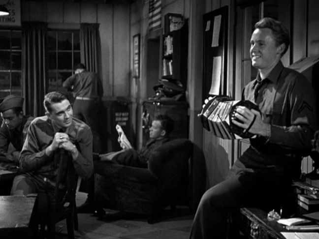 So how does the film hold up today? It’s a very graceful story with note-perfect performances, but it’s not without its flaws. Besides obviously being very dated and idealized, although to a World War Two film buff this is an asset, it’s also slightly bombastic. In one scene, Marcus and Tobey lead their fellow soldiers in a rousing rendition of “Leaning On the Everlasting Arms,” and Frank Jenks, who plays a soldier named Larry, breaks the fourth wall, asking the audience to join in.