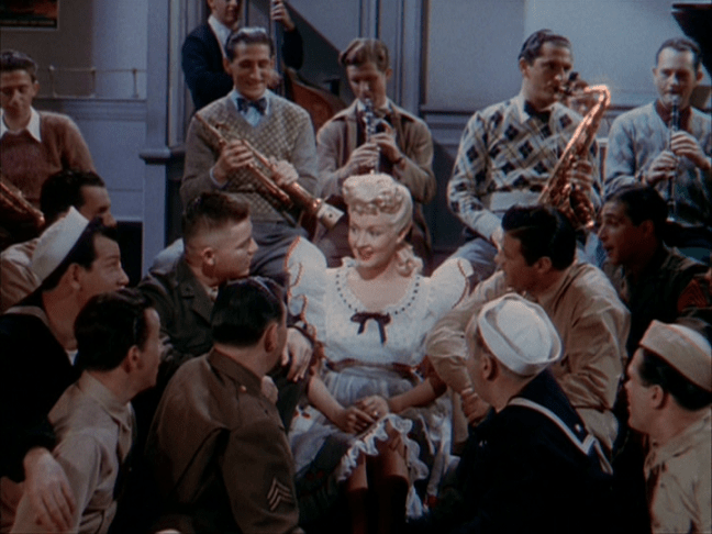 Last but not least, we can’t forget Warner Bros’ showcase of the Hollywood Canteen and the stars who frequented it. Well, the stars from Warner Bros., anyway. A sweet but improbable romance between Joan Leslie and Robert Hutton punctuates the proceedings.