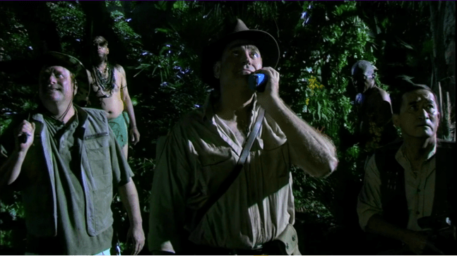 No one seems too concerned, though. There’s a lot of trekking through the jungle and dinging around, not to mention it’s like Survivor, only without the tribal councils. The group also finds a giant egg, which they somehow are able to crack and turn into scrambled eggs with a nice, new T-Fal skillet they mysteriously find.