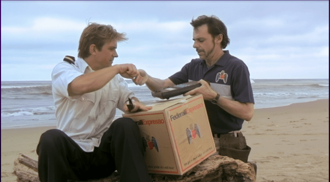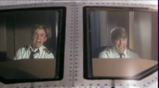 Long story short, one of the flight attendants, who looks like a cross between Patrick Bateman and Gavin Newsom, is actually an undercover spy. He jumps overboard with a fellow spy, who’s dressed like Britney Spears in the “Oops, I Did It Again” video. Meanwhile, the plane crashes into a Federalli Espresso cargo plane and then crashes into the badly rendered CGI ocean. Miraculously, pilots, crew, and passengers all wash up dry on the beach, no one’s hair is mussed, everyone’s clothes are intact, everyone’s makeup is perfect, and their cell phones work.