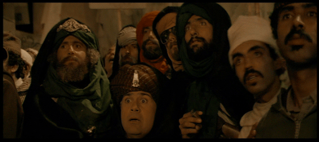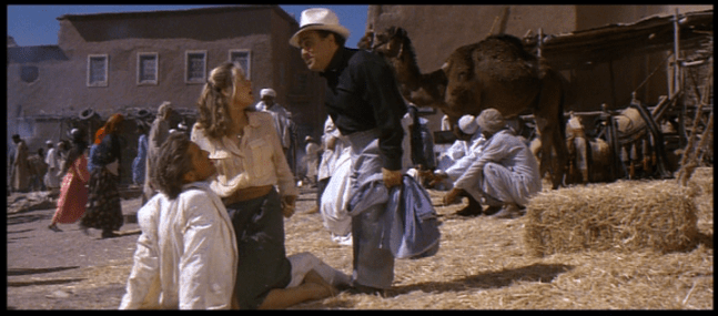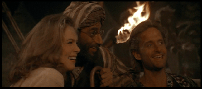 It’s also fun to see the Sufis, who meet Tarak at the airport with a boom box in tow. So much about this movie is really dated, but that’s just part of its charm. Well, mostly–besides Omar’s more than obvious Nazi connections there’s one scene in which Ralph refers to one of the Sufis as a “towel head.”