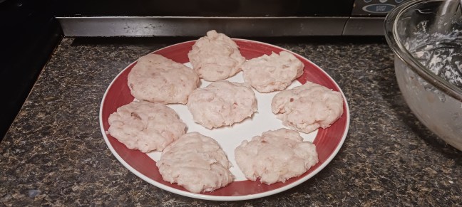 A little bit of egg white for the binder. These cakes were gonna be light and airy, and I liked the fact that they wouldn’t have any breadcrumbs in them.