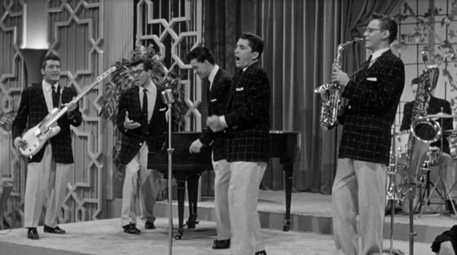 Anyone who is watching the movie for the music, however, is in for a treat, because the bands pull out all the stops. Like Bill Haley and His Comets. I’m not going to spoil anything there, either, but there’s one number in which the band members do some pretty remarkable things with a bass fiddle and a tenor sax. Eddie Van Halen would have probably been proud and maybe a little envious.