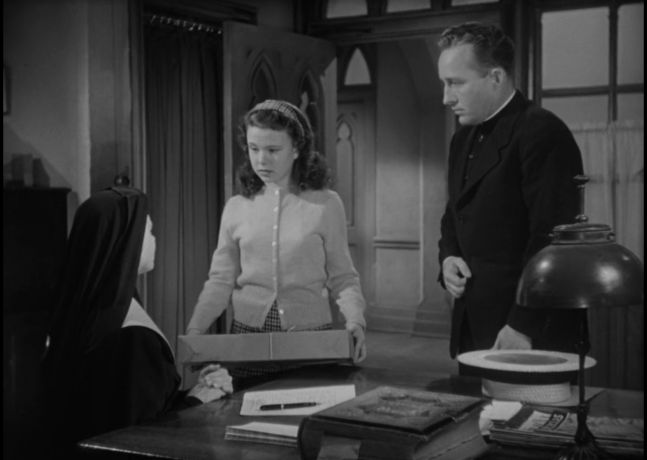 The other major subplot is a new student, Patricia Gallagher (Joan Carroll), whose mother, Mary (Martha Sleeper) pleads with Chuck to let her daughter come to St. Mary’s. Her husband left her to establish himself as a musician in Syracuse and then didn’t send for her. That was thirteen years ago. Now her daughter is starting to get rebellious and Mary is hoping Father Chuck can straighten her out.