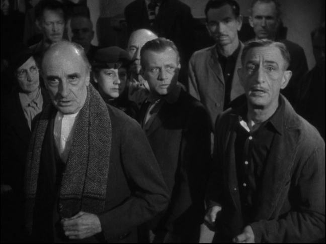 Well, they don’t hurt him, but that doesn’t stop them from arresting him and hauling him down to the courthouse for a hearing, presided over by the local bail bondsman, Erik Ernst (Ralph Bellamy), Elsa’s fiancee. Ygor hightails it to Ludwig’s house, where he begs Ludwig to fix the monster by giving him a new brain.