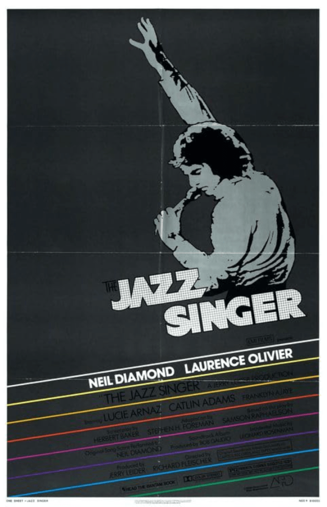 In light of Song Sung Blue coming out last month, I thought it would be fun to look at 1980’s The Jazz Singer, starring the actual Neil Diamond. I have vague memories of this movie, mostly of the last scene, partly because it’s so iconic, also partly because “America” is one of my favorite Neil Diamond songs, and still also partly because, again, my late Aunt Rosemary was a big Neil Diamond fan, rest her soul.